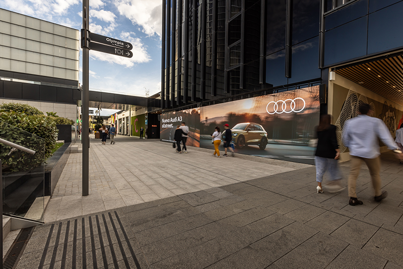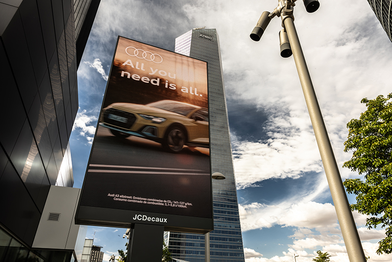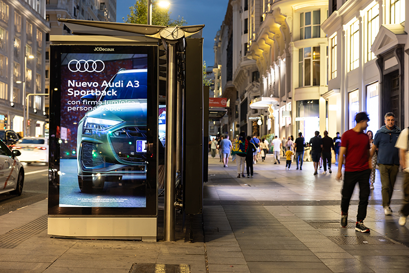 Para el lanzamiento del nuevo Audi A3 Sportback, la marca decidió apostar por una campaña 360º en todos nuestros soportes digitales: calle, metro, centros comerciales y Gran Formato Gran Vía. Utilizando el efecto 3D para destacar el coche.