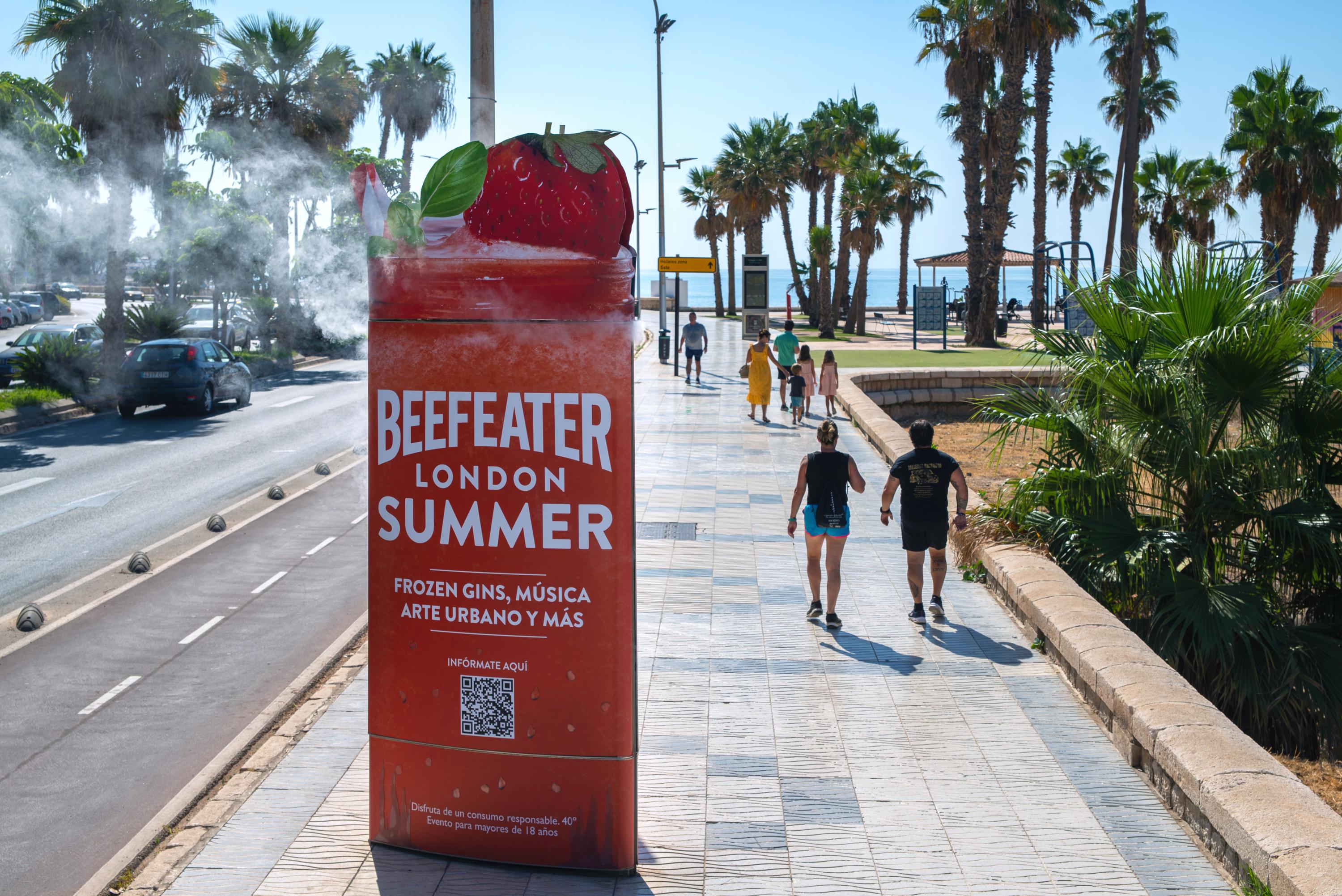 Beefeater convirtió los mupis de la ciudad en cócteles gigantes con corpóreos 2D que simulaban fresquito con humo artificial