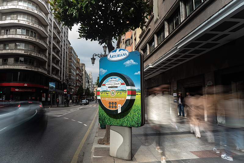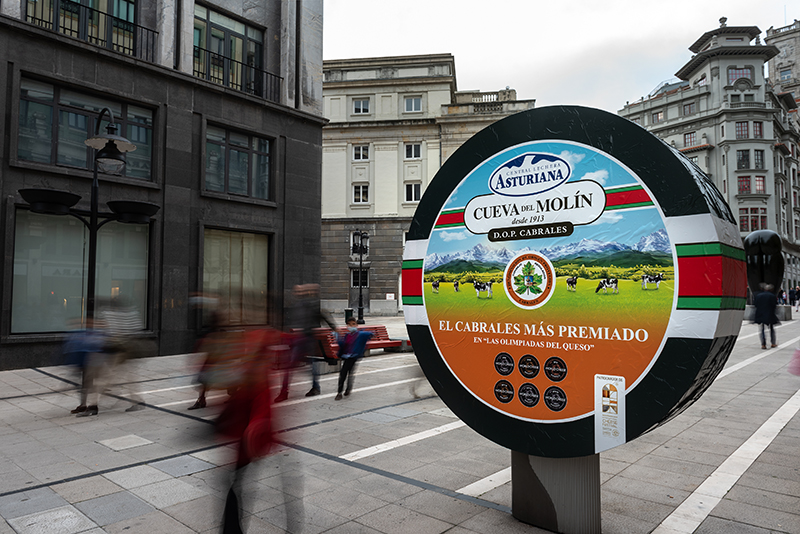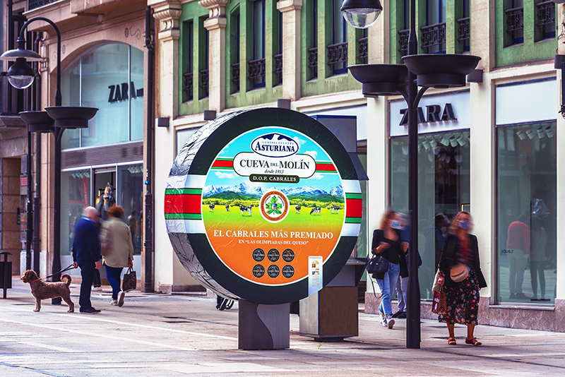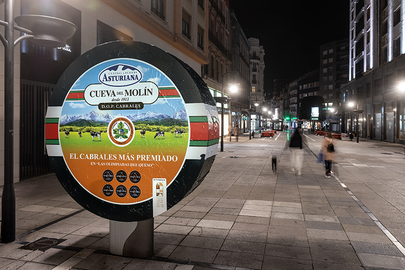 Central Lechera Asturiana expone su queso cabrales en los mupis de Gijón y Oviedo con corpóreos 3D