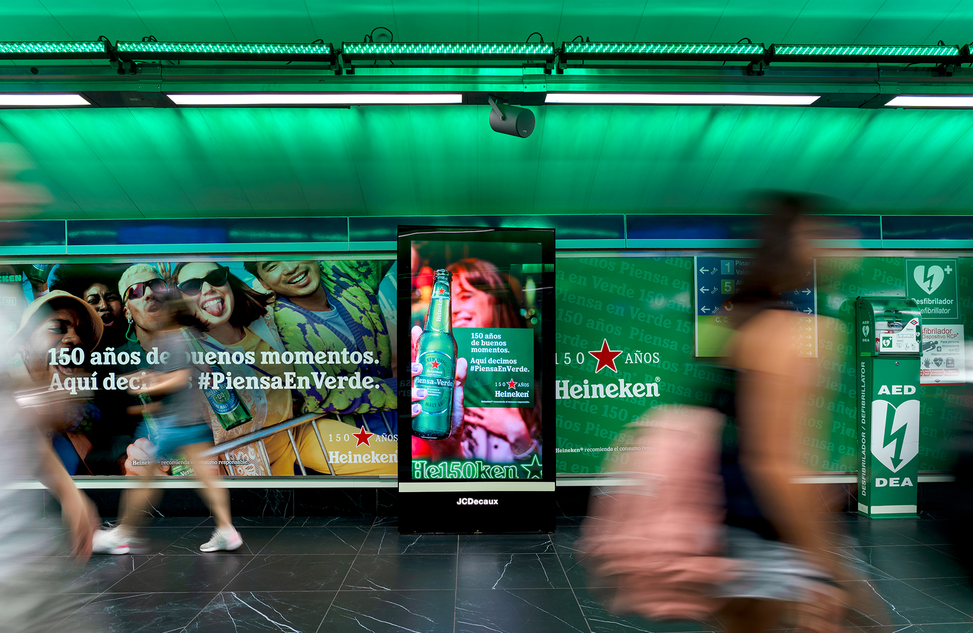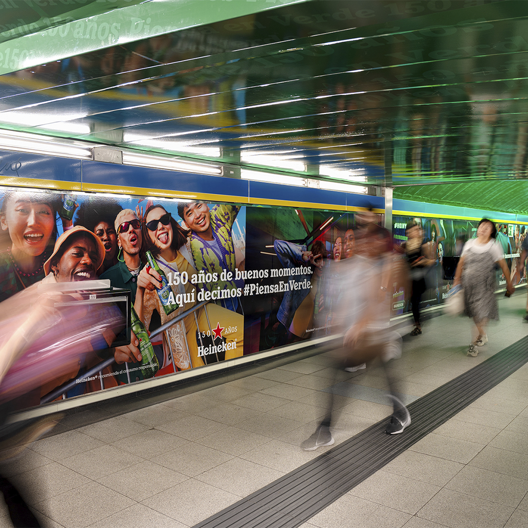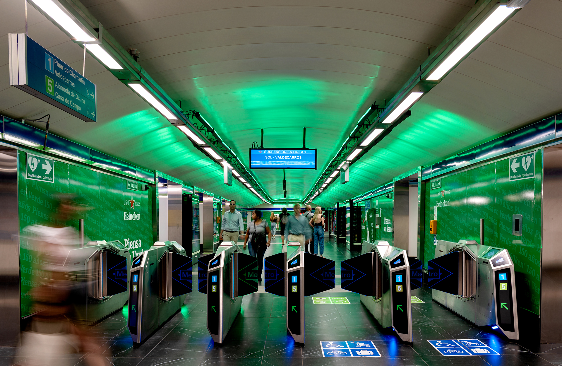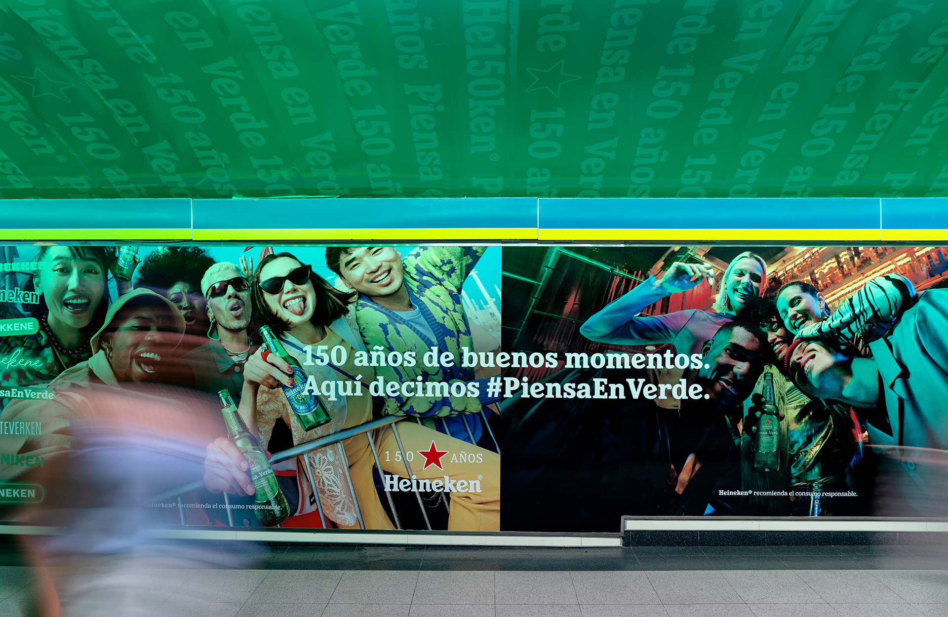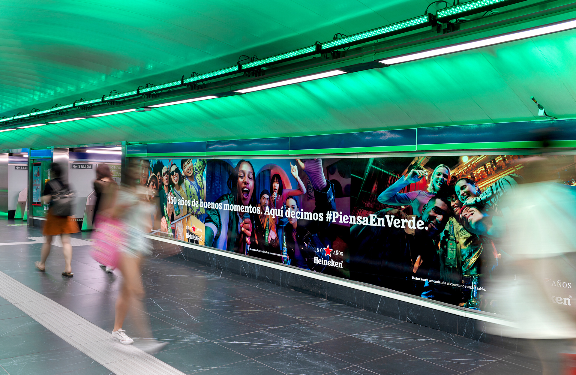 Heineken en las estaciones de Metro en Madrid, con vinilado completo en las paredes y los techos