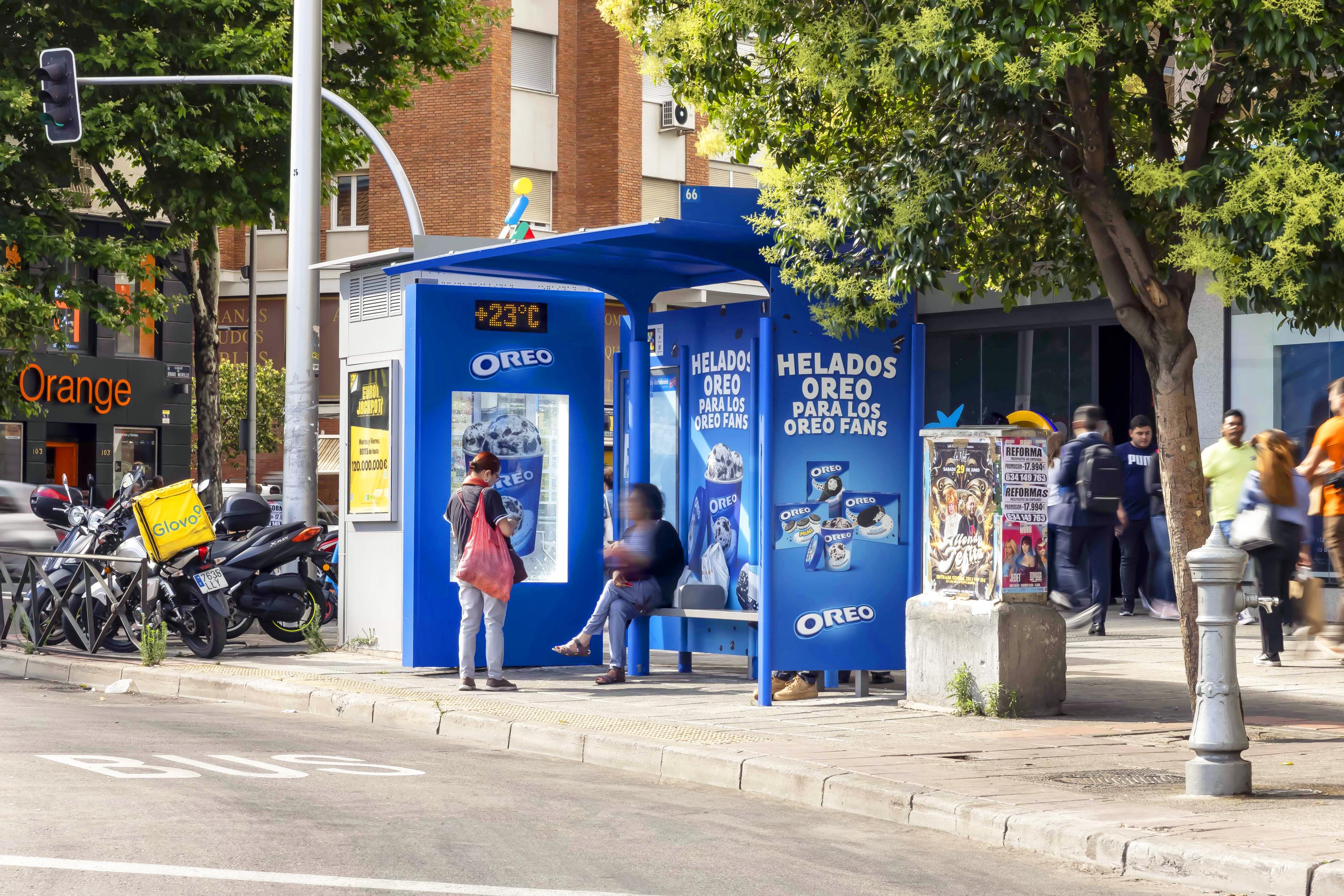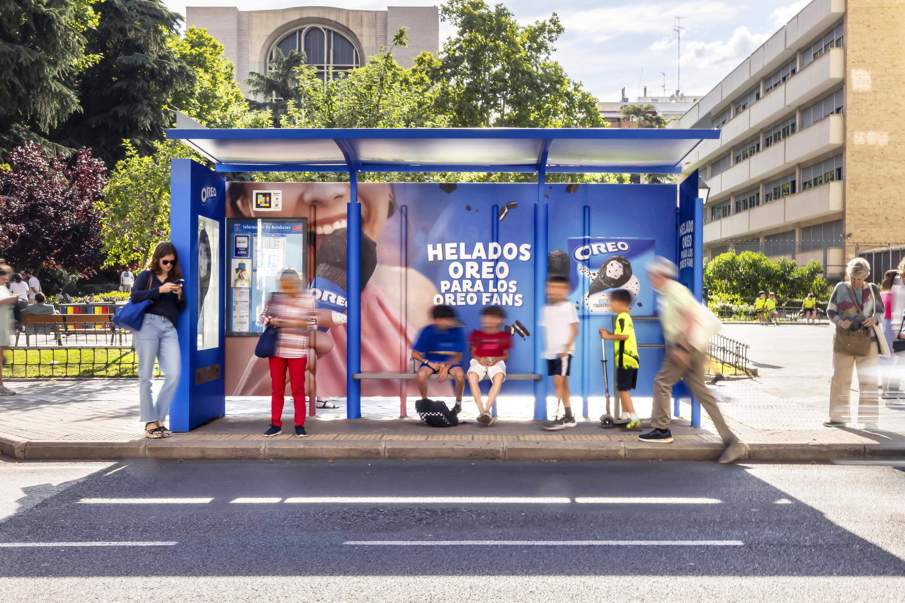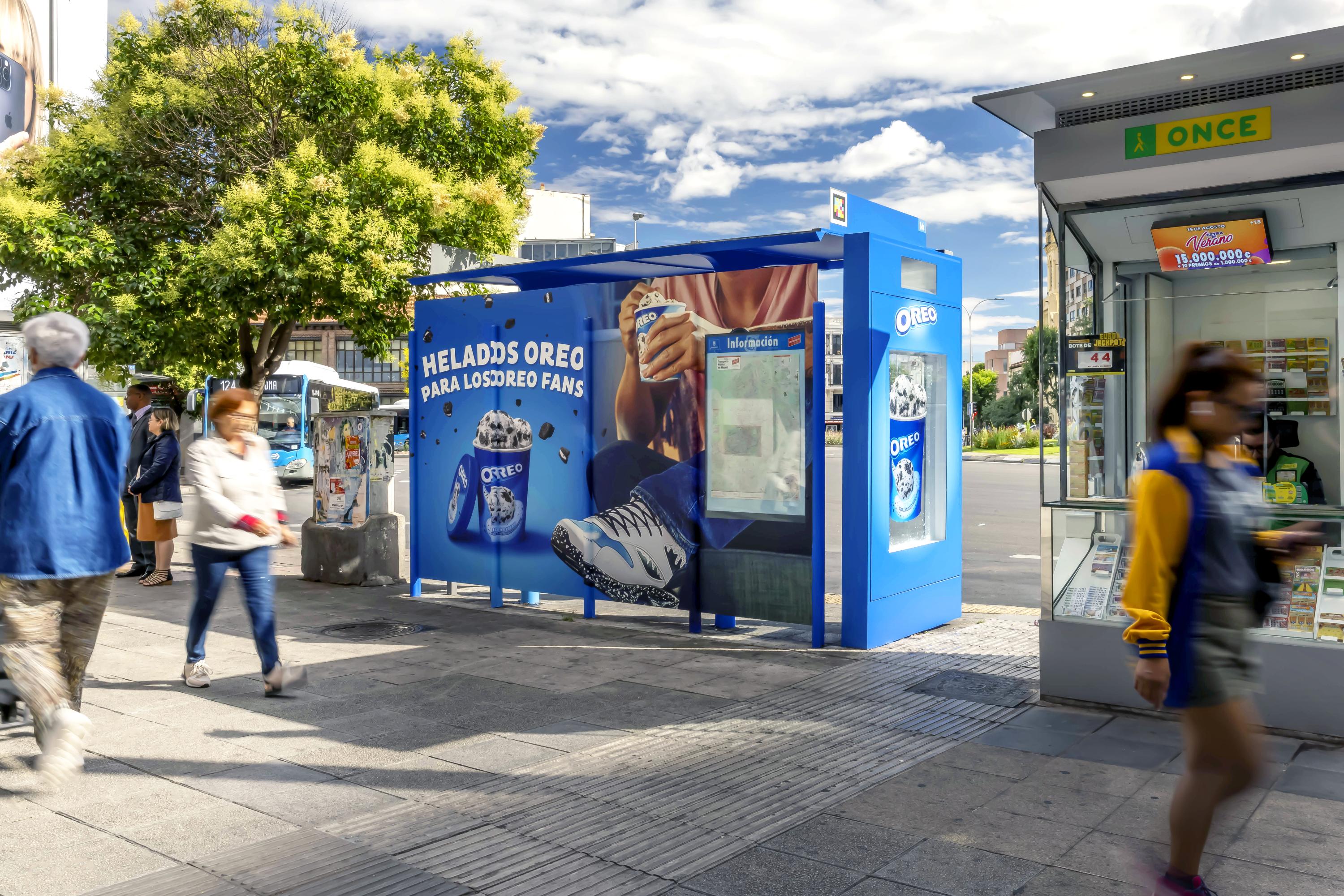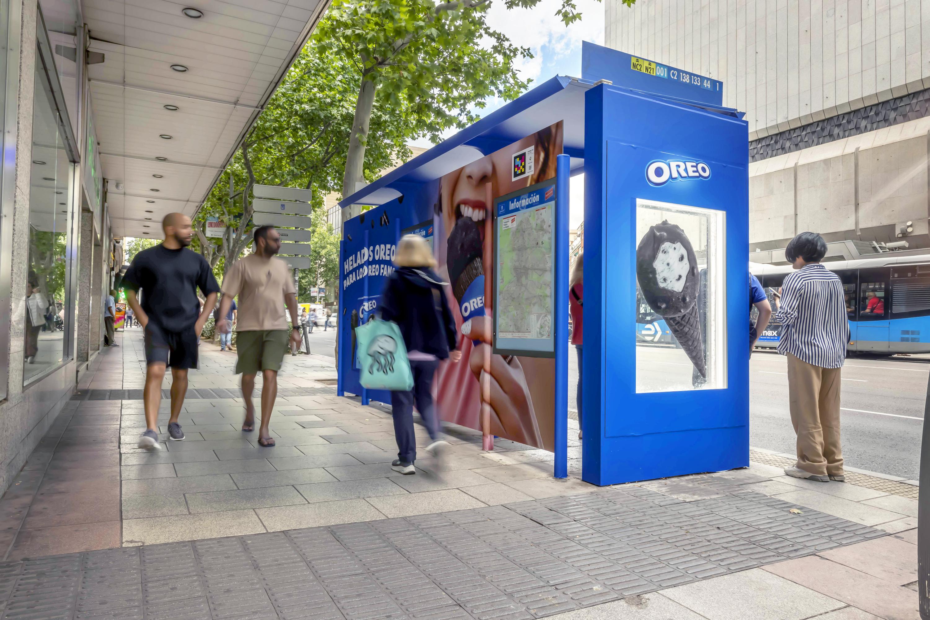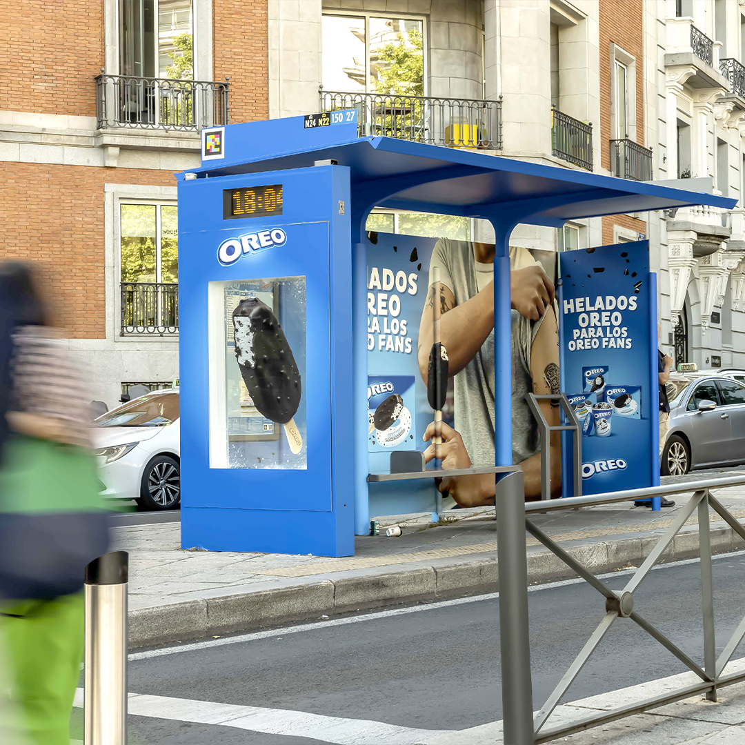Helados Oreo apuesta por el vinilado integral en estructura y un cajón con metacrilato impreso iluminado perimetralmente para darle protagonismo a su producto.