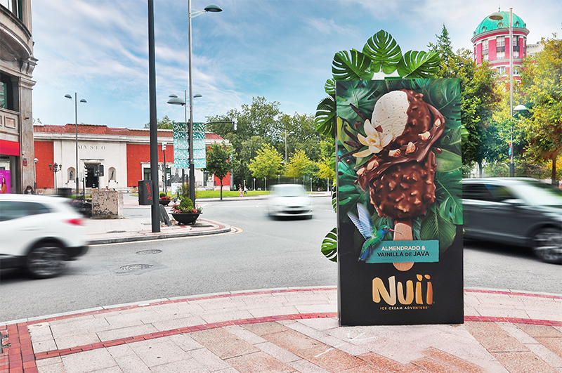 Nuii apuesta por los corpóreos 3D y el vinilado integral de Mupis en Bilbao inspirando a la audiencia a conocer el nuevo producto