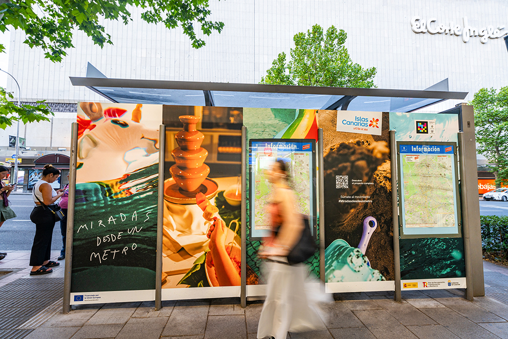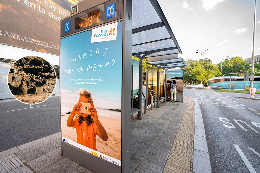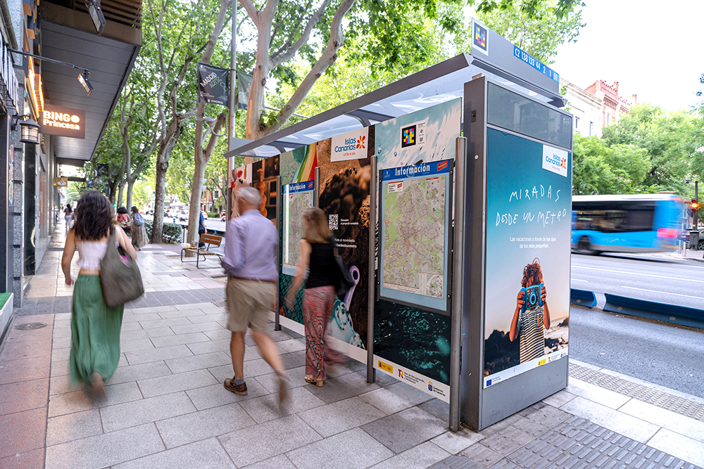 Acción que comunica turismo para las islas canarias, con mupis y marquesinas con vinilado de gran formato.