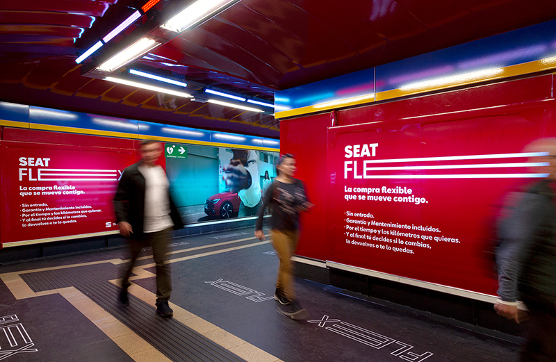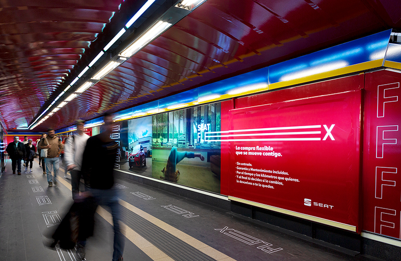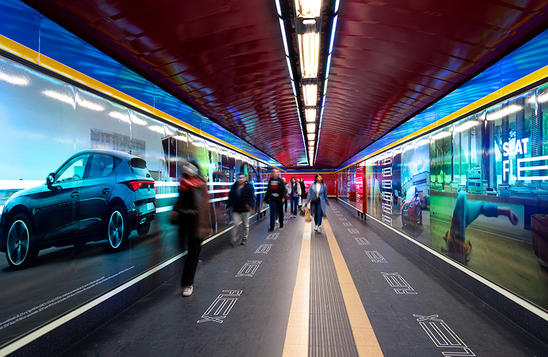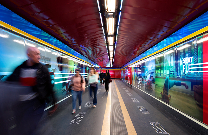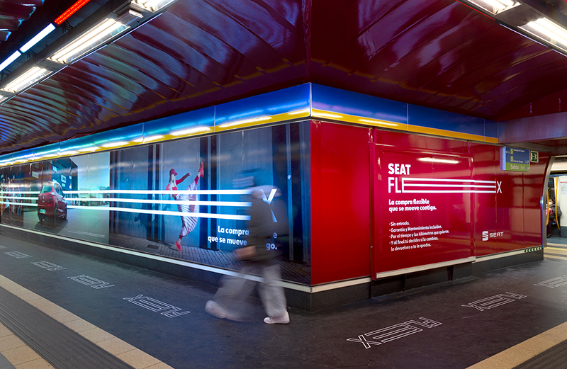 Seat vinila la estación de Madrid, Callao, añadiendo luz en el techo y en las paredes.