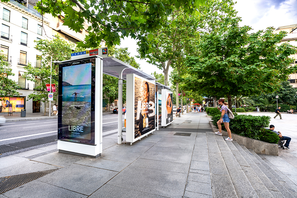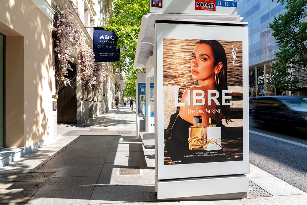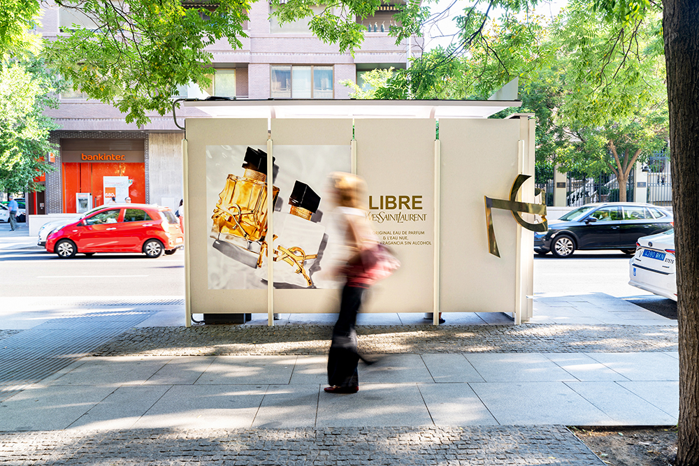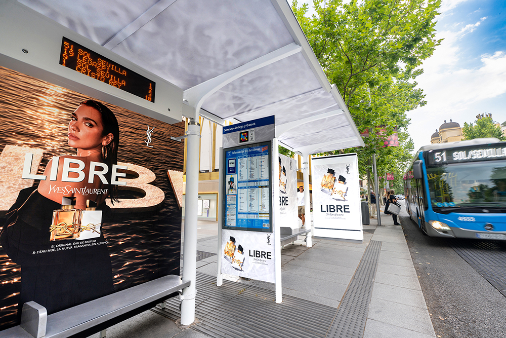 YSL y L`Oreal promocionan su nuevo perfume LIBRE por las marquesinas de Madrid.